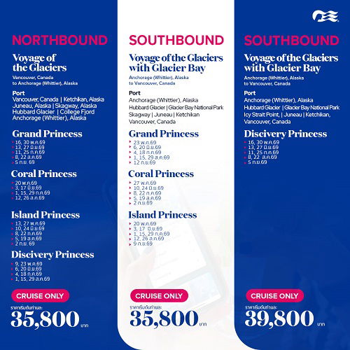 2026 ล่องเรือหรูเที่ยวอลาสก้า (Southbound)