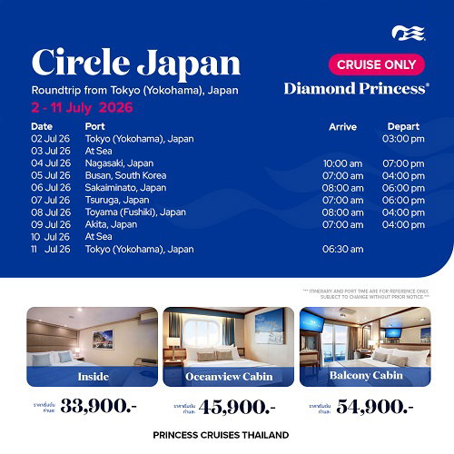 ล่องเรือหรู 9-Day Circle Japan Diamond Princess